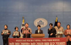 전종덕 진보당 의원과 전국농민회총연맹, 전국여성농민회총연합, 민주노총 전국사무금융서비스노동조합, 사무금융노조 전국협동조합본부는 15일 국회 소통관에서 기자회견을 열고 농협 개혁을 가로막는 기득권 세력 해체를 강력히 촉구했다.이날 기자회견에는 전국협동조합본부 …