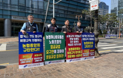 전국협동조합본부는 4월 3일 오전 11시 농협중앙회 앞에서 투쟁선포 기자회견을 열었다. 기자회견에서는 ▲통상임금 규정 확대적용 ▲카드•보험 실적강요 중단 ▲불법•비위 조합장 즉각 처벌 등을 농협중앙회에 요구했고, 내일로 다가온 윤석열 탄핵심판 …