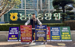 농협중앙회 대의원대회 맞서 ‘강호동 회장 사퇴·순정축협 부당감사 철회·한국양계축협 조합장 규탄’ 선전전 진행