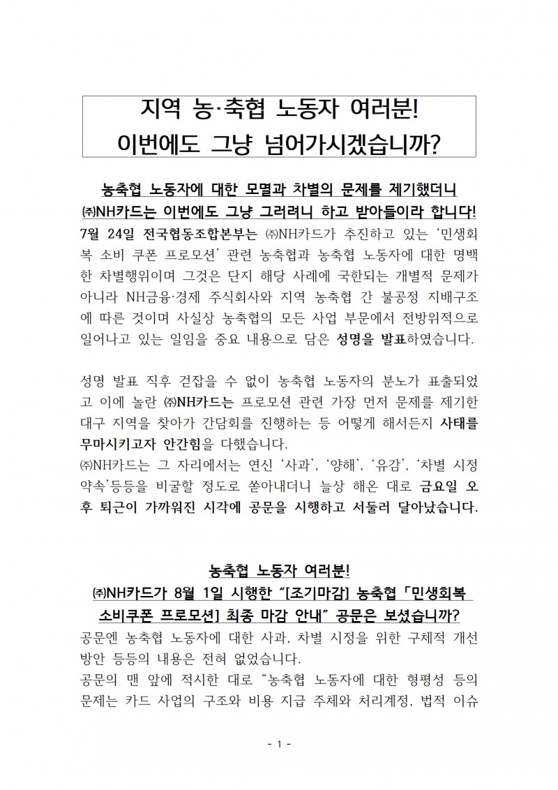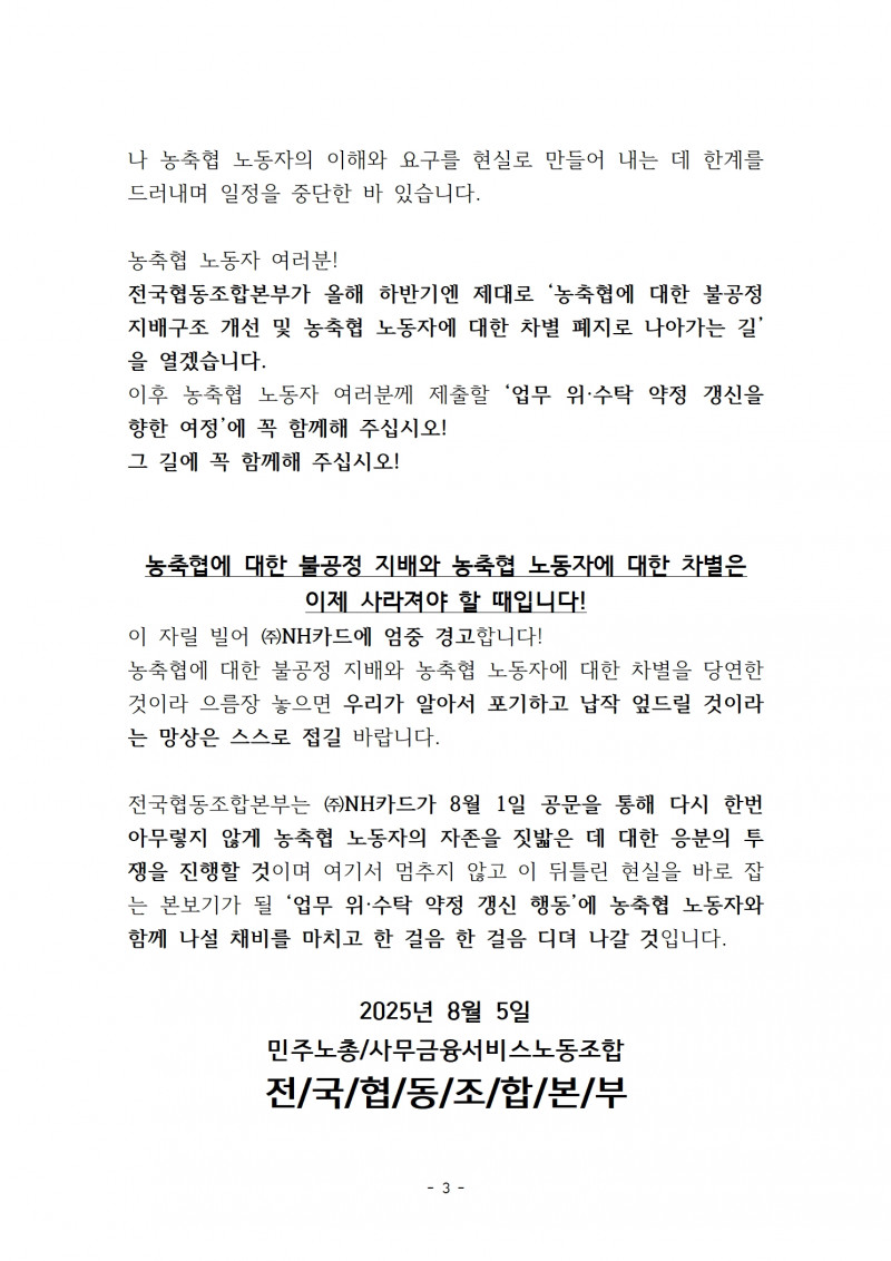 성명 | 250805) 농축협 노동자 여러분! 이번에도 그냥 넘어가시겠습니까?